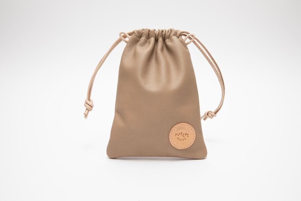 ハリくた くた巾着 ミルクティーは、ウォッシャブルレザーを使用した洗える革のレザー巾着です。最大の魅力は、その美しさと機能性を兼ね備えたデザイン。この巾着は、日常のコーディネートから特別なシーンまで大活躍します。