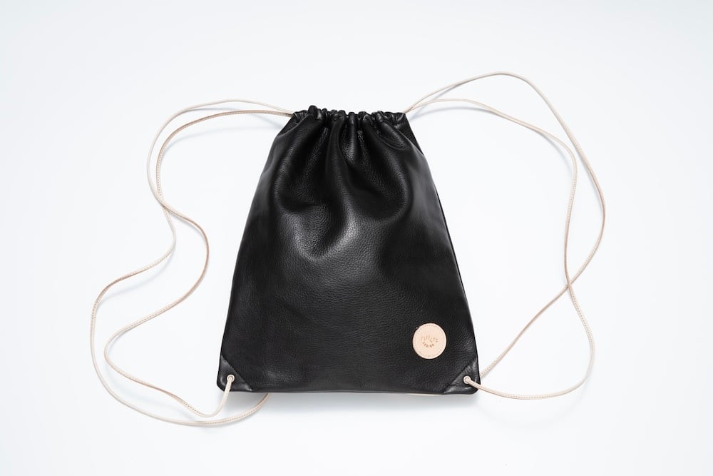 しなやかで柔らかなウォッシャブルレザーは、使い込むほどに身体に馴染み、独自の風合いが生まれます。巾着の紐には高品質なヌメ革を使用。ハリくたのロゴにはヌメ革のさりげないワンポイントが施されており、アクセントとして光ります。